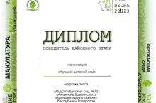 Диплом Победителя в районном этапе республиканской акции "Эковесна-2023" 16.06.2023