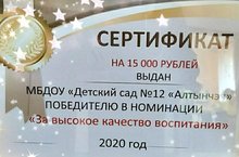 ДОУ - победитель в номинации "За высокое качество воспитания" 21.08.2020