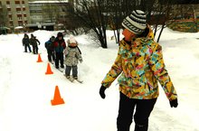 Инструктор по физическому воспитанию Тагирова Румия Анваровна проводит занятия по физической культуре на улице, отрабатывая технику ходьбы на лыжах в старших и подготовительных группах. Дети с удовольствием катаются на лыжах, набираются здоровья.