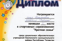 15 мая в Международный день семей в универсальном спортивном зале состоялись спортивные состязания между семьями воспитанников дошкольных образовательных организаций нашего района. Честь нашего детского сада достойно защищала семья Имамиевых. Они заняли 2-ое место. Поздравляем крепкую и дружную семью Имамиевых.