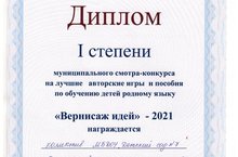 Безнең коллектив "Вернисаж идей- 2021" бәйгесендә I дәрәҗә диплом белән бүләкләнде. 18.03.2021