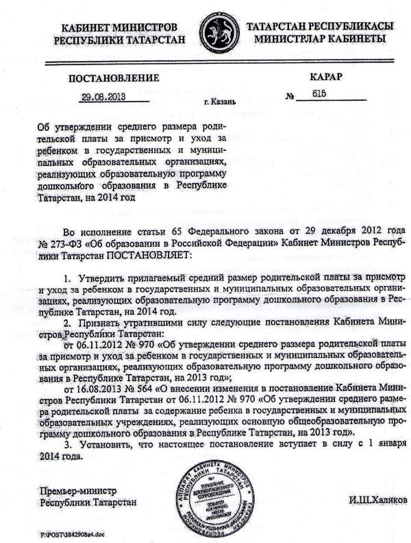 Министерством образования и науки совместно с Министерством финансов Республики Татарстан и Центром экономических и социальных исследований Республики Татарстан при Кабинете Министров РТ проработан вопрос о размере родительской платы с 01 января 2014 года. С этой даты размер родительской платы повыситься.