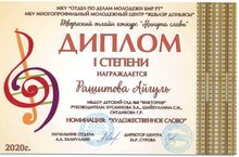 Наша всопитанница Рашитова Айгуль Диплом I степени
