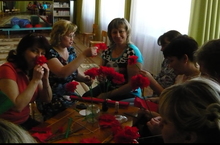 Сотрудники детского сада провели мастер-класс по изготовлению цветов - красных гвоздик, с которыми выйдут на Парад, посвященный 69 -ой годовщине Великой Победы.