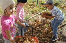 Во время таких прогулок дети учатся работать в коллективе, сообща. Так и наши ребята знают об этом и с большим удовольствием помогают воспитателям приводить участок в порядок. В этом возрасте дети любят помогать в любом деле, и это стремление мы обязательно поддерживаем.Бүген зурлар төркеменә йөрүче балалар тәрбиячеләренә коелган яфраклар җыйяга булыштылар. Кече яшьтән хезмәт сөеп үсәргә, өлкәннәргә ярдәм итәргә өйрәтү алымнары балалар бакчасында кечкенәдән күнектерелә.