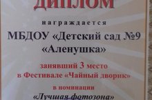 Наш детский сад награжден дипломом за 3 место в фестивале "Чайный дворик" в номинации "Лучшая фотозона"