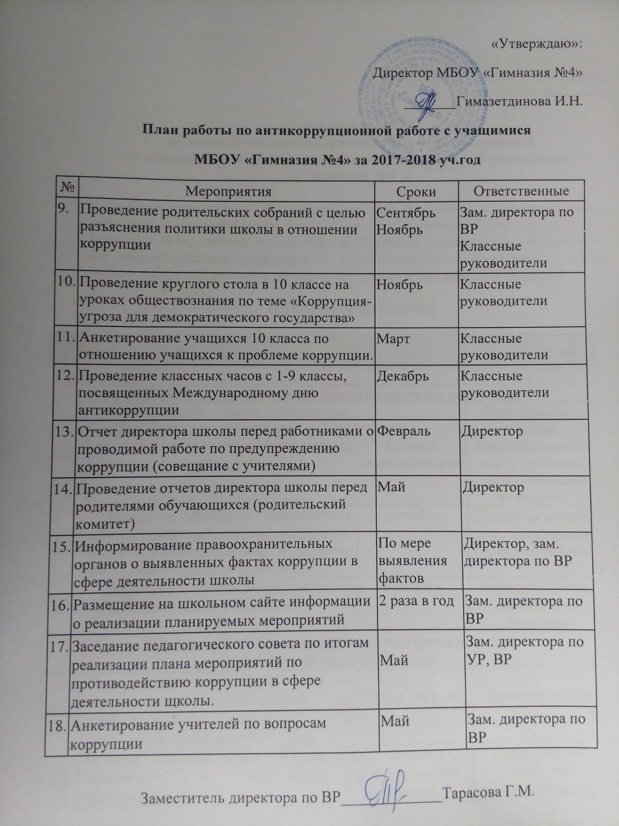 Приказ " Об организации антикоррупционной деятельности в МБОУ "Гимназия №4"