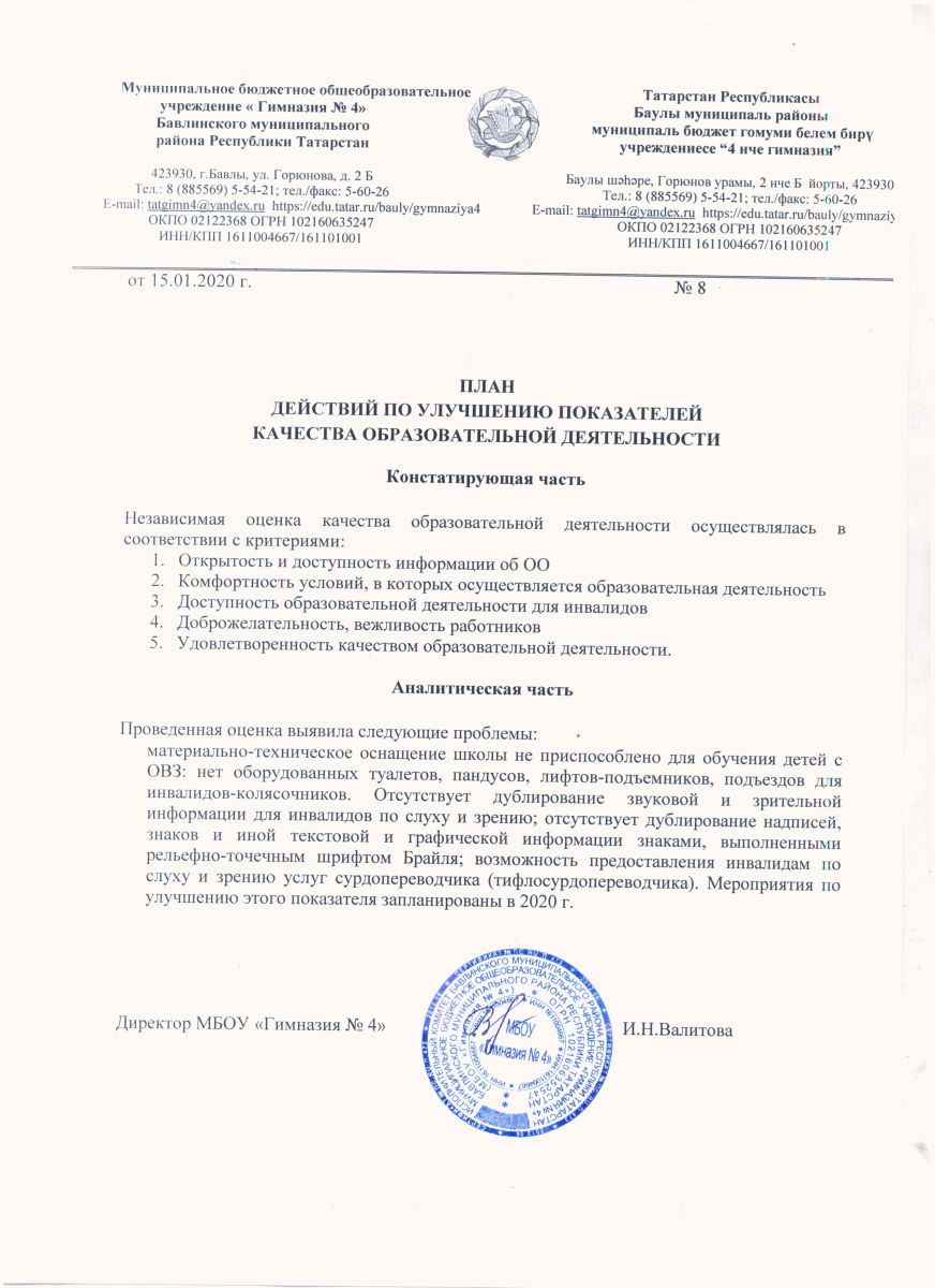 - Результаты НОК МБОУ "Гимназия № 4" Бавлинского муниципального района Республики Татарстан