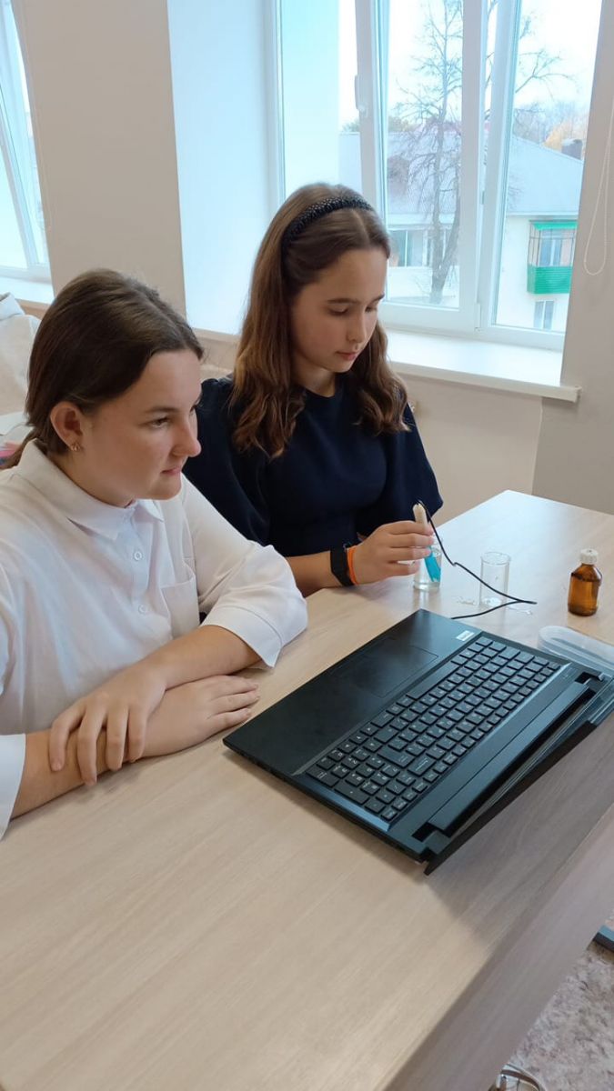 В МБОУ "Гимназия №4" на базе центра образования "Точка роста" созданного в рамках национального проекта "Образование", 14 ноября прошло мероприятие по химии. учитель - Шафикова Р.н. С учащимися 9 класса был проведен мастер-класс на тему " Эффективные технологии подготовки к практической части основного государственного экзамена (ОГЭ)", с использованием оборудования и реактивов. Ученики 10 класса выступили в роли эксперта, ознакомили с правилами техники безопасности , с порядком проведения практической части ОГЭ.