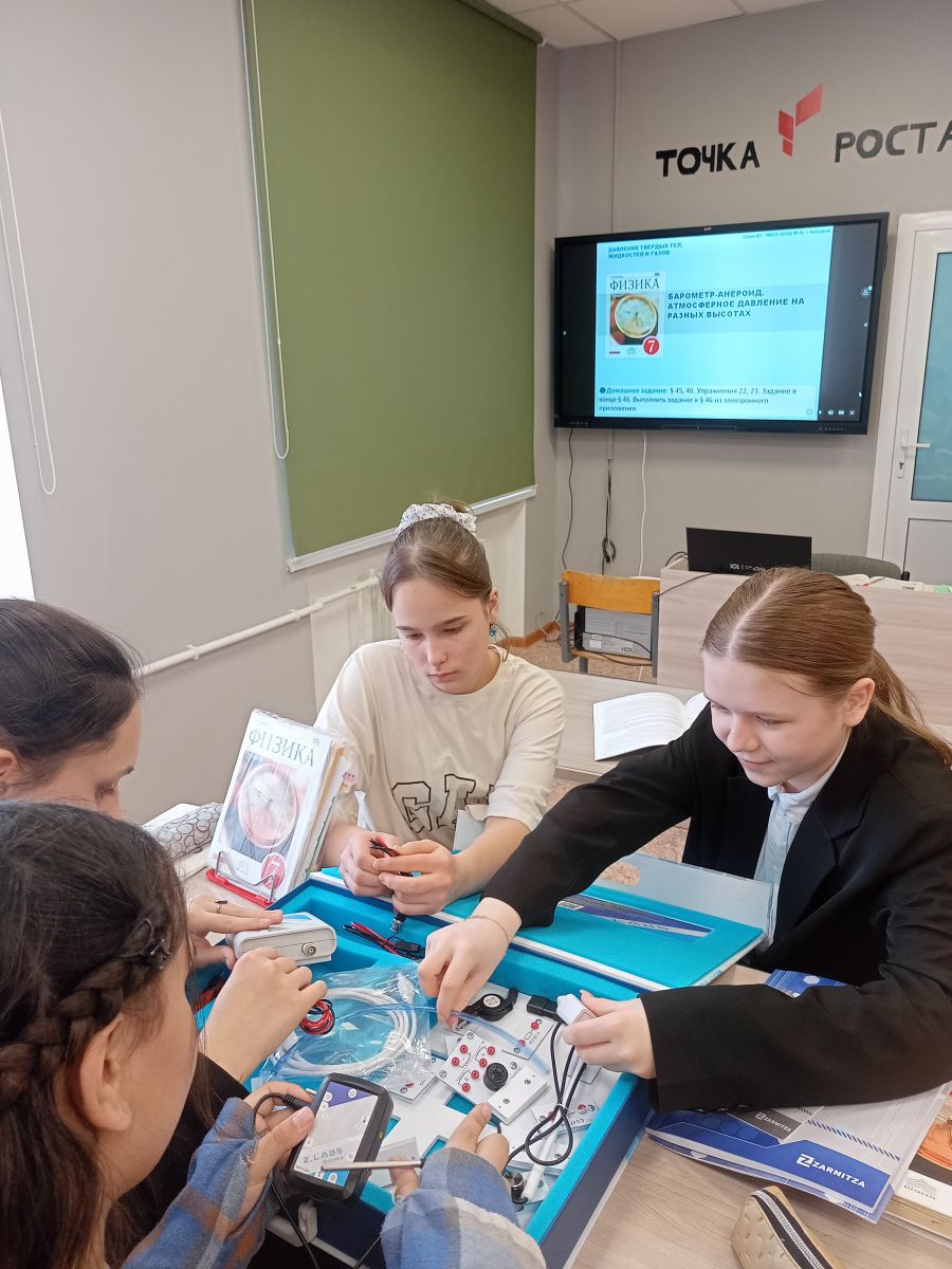 В 7 классе учащиеся знакомятся с таким увлекательным предметом, как физика. На одном из ее уроков семиклассники провели первый урок-исследование "Измерение температуры при помощи датчика температуры" с использованием лаборатории центра "Точка роста"