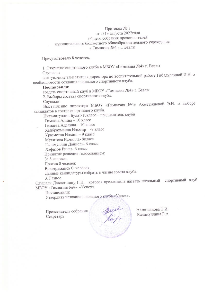протокол общего собрания представителей МБОУ "Гимназия №4"