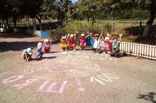 Сегодня с ребятами провели творческое занятие "Я рисую мелом".