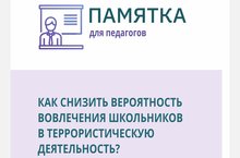 Памятка для педагогов: "Как снизить вероятность вовлечения школьников в террористическую деятельность?" Педагоглар өчен белешмәлек: "Укучыларны террорлык эшчәнлегенә җәлеп итү ихтималын ничек киметергә?" 20.04.2022