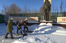 Трудовые десанты по очистке снега с территории обелиска. Обелиск территориясеннән кар чистарту буенча хезмәт десанты. 19.01.2021