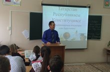 Сегодня учитель истории и обществознания Гафиятуллин Р.Ш. провел Парламентский урок, посвященный теме «Конституция Республики Татарстан: 25 лет истории». На нем в простой и доступной форме было рассказано школьникам о роли и задачах законодательного органа власти республики, правах и обязанностях человека, о способах и инструментах участия в общественно-политической жизни, о том, какую большую роль в нашей жизни играет закон.