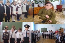 Сегодня среди начальных классов прошел конкурс солдатских песен. Все 4 класса выступили достойно. Но равных не было выступлению учащегося 1 класса Хайретдинова Радмира.