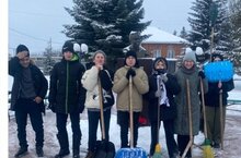 Участники движения первых и юнармии очистили от снега территорию возле памятника воинам ВОВ и бюста Героя ВОВ М.П. Панарина 13.12.2024