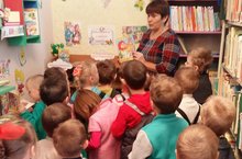 Экскурсия в библиотеку. Дети ходили в библиотеку знакомились с книжками. Так же делали апликацию)