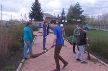 Учащиеся 2-9 классов и работники школы вышли организованно на субботник.
