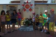 Ребята из пришкольного лагеря "Радуга" возложили цветы к Обелиску павшим воинам.