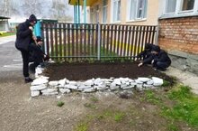 В рамках акции "Весенняя неделя добра" отряд юнармейцев школы принял участие в акции "Озелени школьный двор" 05.05.2022