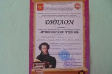 Ученица 9 класса Шайхетдинова Алина получила диплом II степени в открытом Всероссийском творческом конкурсе "Пушкинские чтения" в г.Набережные Челны. Молодец, Алина!