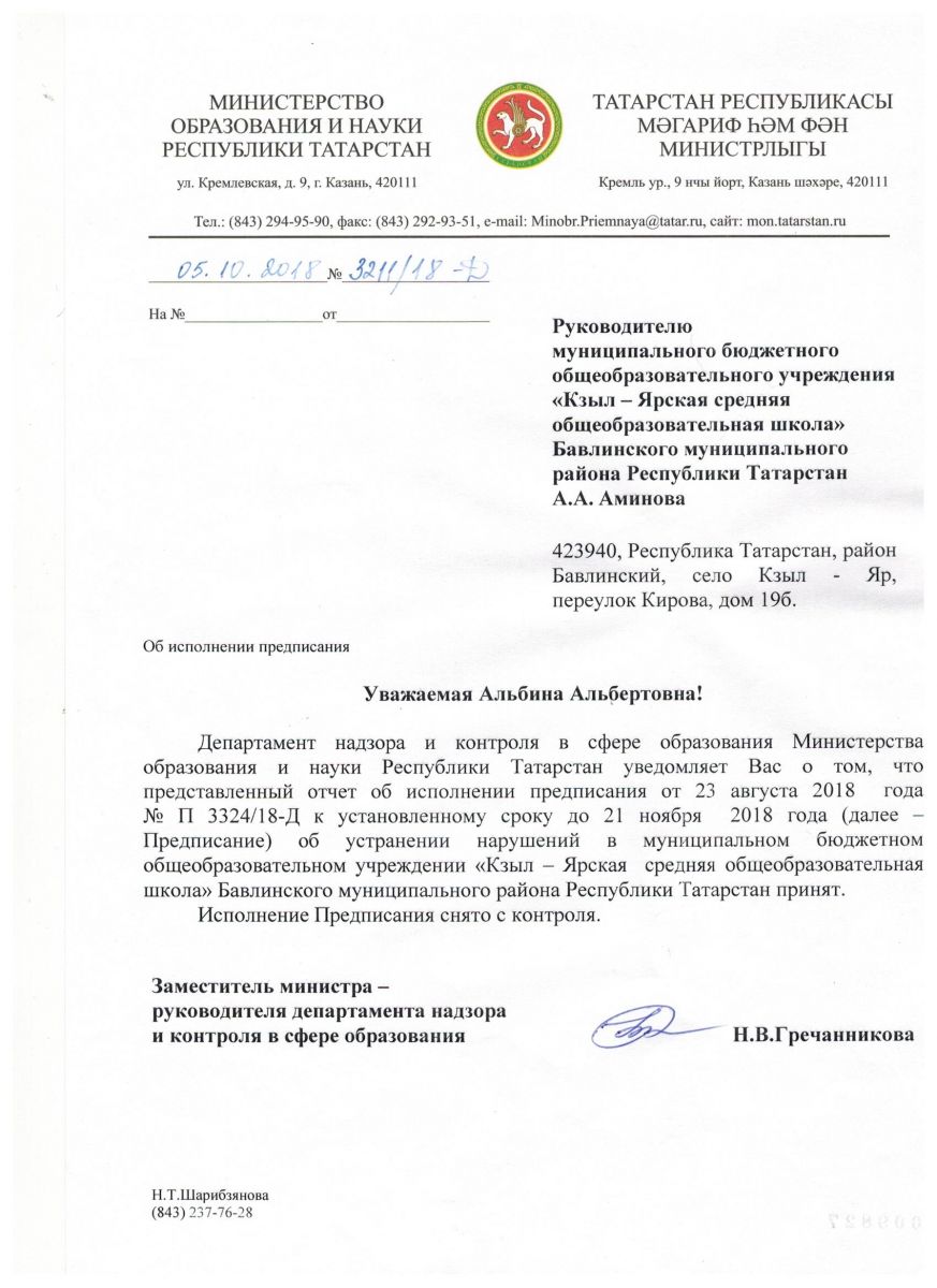 Предписание об устранении нарушений Министерства образования и науки РТ 2018 год