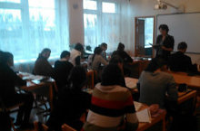 Во время каниикул все учителя-предметники по плану проводили консультации для учащихся 9,11 классов. Учитель татарского языка и литературы Ахатова Ф.Б. во время работы с учащимися 11 класса, которые сдают экзамен по татарскому языку.