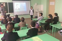 Тухватуллина И.Н. 1-4 нче сыйныф укучылары арасында "Туган ягы кирәк кешегә" исемле уен-викторина уздырды. Кичәнең максаты:туган җирнең якынлыгын , гүзәллеген аңлый белү хисләрен камилләштерү; туган якның күренекле шәхесләре турында белемнәрне тирәнәйтү; сөйләм телен үстерү, сүзлек байлыгын арттыру; туган җиргә мәхәббәт тәрбияләү. Җиһазлау: китаплар күргәзмәсе, презентация. "Бүгенге сыйныф сәгатендә туган җирнең җанга якынлыгы, аның гүзәллеге, бу турыда әдипләребезнең фикерләре,туган ягыбызның данын еракларга илтүче күренекле якташларыбыз турында сөйләшербез. Әңгәмәбезне Фәнис Яруллинның “Туган ягы кирәк кешегә”дип аталган шигыре белән башлыйсым килә"- дип башалды кичәне Инзилә Нурхлаковна. Укучылар әдипнең "Алабай белән Соры" әкиятен рольләргә бүлеп укыдылар, шигырьләрен яттан сөйләделәр, викторина сорауларына җавап бирделәр. Кичә бик күңелле узды.