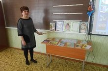 Библиотекарь школы Тухватуллина Инзиля организовала для учащихся выставку, посвященную Победе.