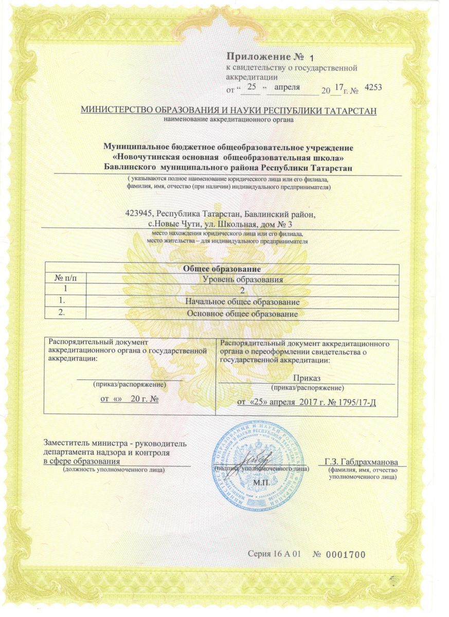 Адрес: 423945, РТ, Бавлинский район, с. Новые Чути, ул. Школьная, дом № 3