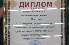 18-20 марта в Б.Сабах прошел XIX Открытые лично – командные Всероссийские соревнования по настольному теннису среди мальчиков и девочек 2008 г.р. и моложе посвященные «Году родных языков и народного единства». Команда Бавлинского района заняла 2 место. в личном зачете Кириллова В. - 1м., Хамитова А.- 2м., Сулейманов А. - 3м.