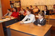 Филимонова А. И. прочитала небольшую лекцию о бережном отношении к природе родного края, о русских народных сказках. Учащиеся ее класса исполнили на гитаре песни народов мира.