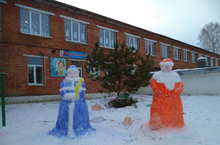 На территории школы полным ходом идет строительство новогодних снежных фигур.