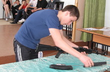 В рамках месячника военно-патриотической работы в школе 18 февраля прошел конкурс между учащимися 5-7 классов "А ну-ка, мальчики!". Были проведены конкурсы на разборку и сборку автомата, силовые, знания полководцев ВОВ и оказания первой медицинской помощи. Победила команда учащихся 7 класса.