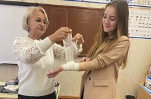 Ребята посмотрели обучающий видеоролик, разобрали основные правила тампонады раны, узнали о современных гемостатических препаратах и отработали практические навыки по остановке кровотечений.