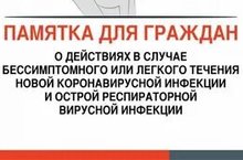 Памятка для граждан о действиях в случае бессимптомного или легкого течения коронавирусной инфекции и острой респираторной вирусной инфекции 01.02.2022