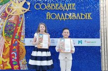 Аделя награждена грамотой "За творческий подход" в номинации "Сценический национальный костюм" (старшая группа 14-18 лет).