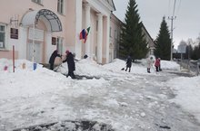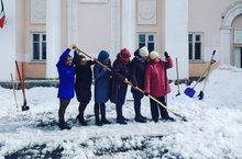 Коллектив дома школьников активно принялся за очистку снега на территории учреждения 01.04.2021