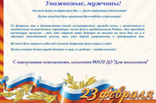 Коллектив МАОУ ДО "Дом школьников" поздравляет всех мужчин, с Праздником!!! 22.02.2019
