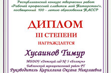Республиканский конкурс творческих работ "Рабочей профессией славится мой Татарстан" посвященный 100-летию образования ТАССР 18.01.2021