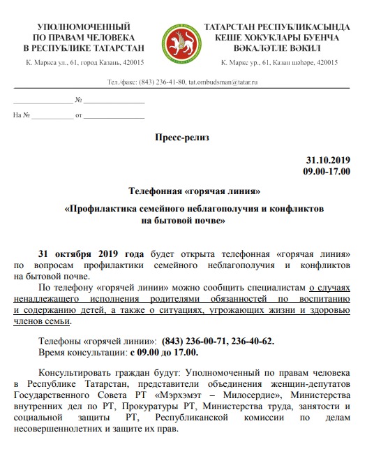 Телефонная " горячая линия" 29.10.2019