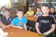 Учащиеся пришли в сопровождении библиотекаря школы Танамандаевой Гульчачак Зайтуновны.