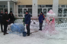 На территории школы в преддверии Нового года совместным трудом учителей и детей созданы красочные фигуры из снега.