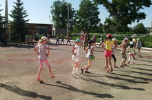 Утренняя зарядка в пришкольном лагере «Радуга». 03.06.2014
