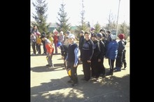 5-ые и 6-ые классы отмывали от зимней грязи площадку перед входом в школу. Классы постарше и сотрудники школы(учителя, техперсонал)раскидывали снег на территории школы.