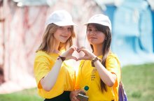 Учащиеся нашего лагеря "Летняя сказка" состязались в спортивной эстафете с отдыхающими лагеря "Нескучный двор".