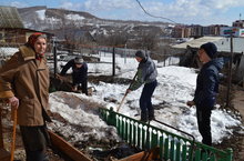В рамках Весенней недели добра, волонтеры школы № 1 совместно с сотрудниками ЦСОН "Милосердие" оказали помощь в уборке территории ветеранам и пенсионерам города.