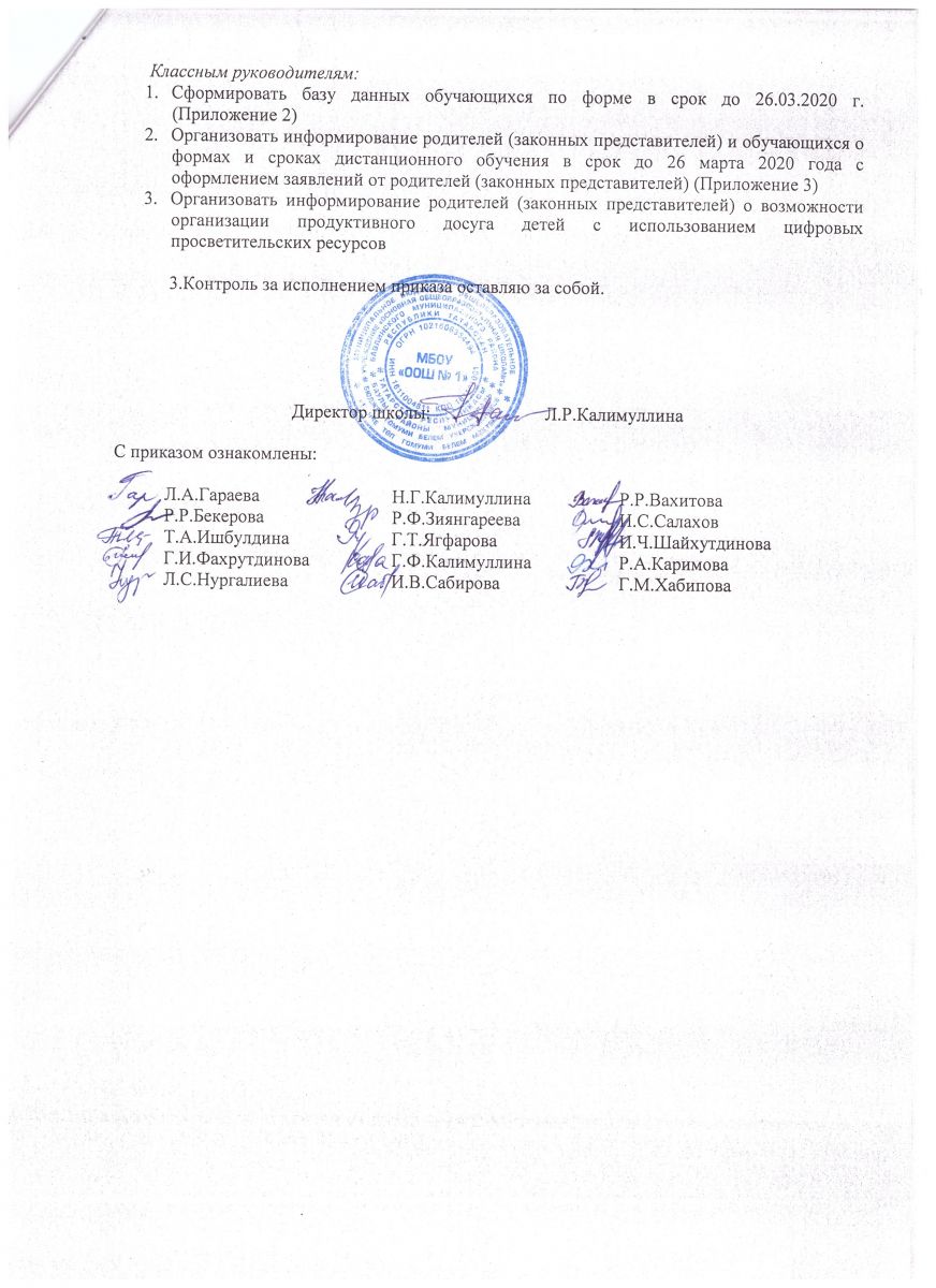 Приказ об организации дистанционного обучения в МБОУ "ООШ № 1"