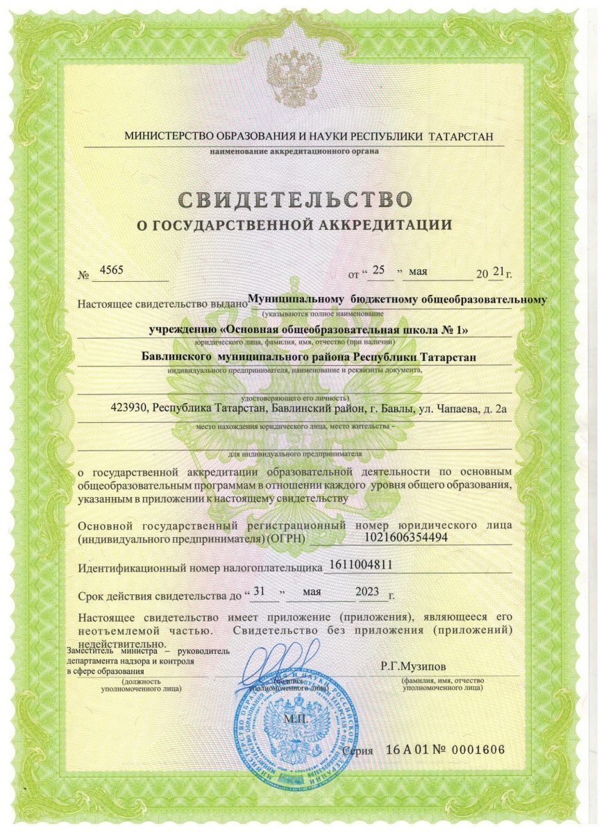 Муниципальное бюджетное общеобразовательное учреждение «Основная общеобразовательная школа №1» Бавлинского муниципального района РТ/ ТР Баулы муниципаль районы " 1 нче номерлы төп гомуми белем мәктәбе" муниципаль бюджет гомуми белем бирү учреждениесе